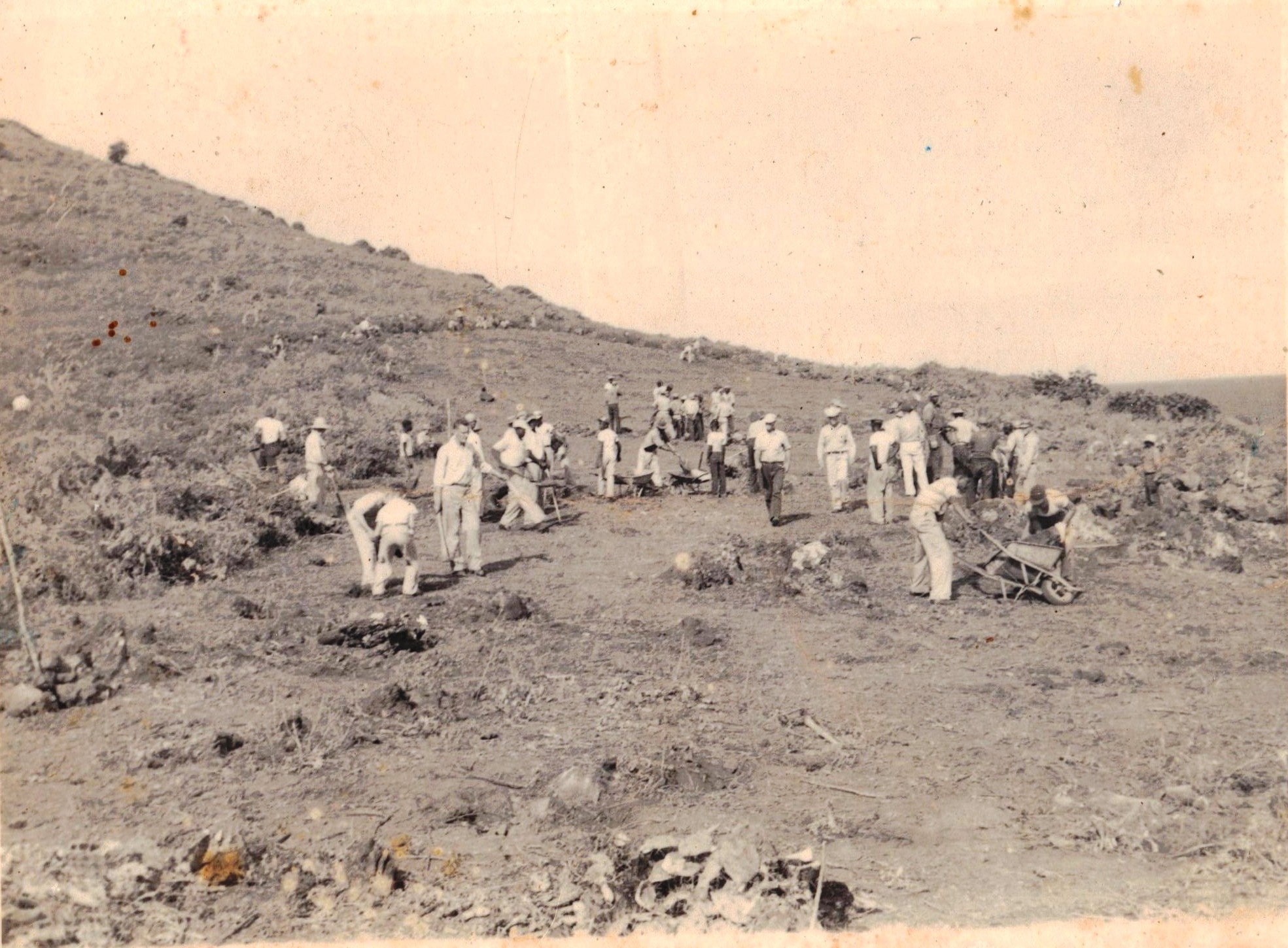 With the exception of the Administrator the two local members of the council were enthusiastic about it. The Administrator of course was concerned about the risks and the potential that he would be the one to be held responsible if anything went wrong. Mr. de Haenen made several passes around the island and chose Flat Point as the only place to land. This part of the island was privately owned. I still have my grandfather’s original bill-of-sale which states that it ran from sea to sea. This was the only bill-of-sale on Saba which could make such a claim. My father used to farm this land and also that of his cousins the Ten Brink family who had moved to Bermuda and the United States. Eugenius Johnson who knew how to mobilize people for a good cause approached my father as well as his first three sons Freddie, Eric and Guy and my father gave the go-ahead to clear the land. I guess my father must have thought that if it did not succeed at least his land would be cleared of all the rocks and he could then plant more sweet potatoes, small corn and pumpkins. Again it was Eugenius Johnson who mobilized the people of Hell’s Gate as well as some from the other villages to help to clear the land. Everyone was quite enthusiastic and within a matter of a couple of weeks with only one or two wheelbarrows available the land was cleared. At that time all the way from Hell’s Gate to where the airport is there was no road, just a goat track. So you had to walk down there and after hours of hard work you had to walk back all the way to the Roman Catholic Church on Hell’s Gate which was as far as motor vehicles could then reach.