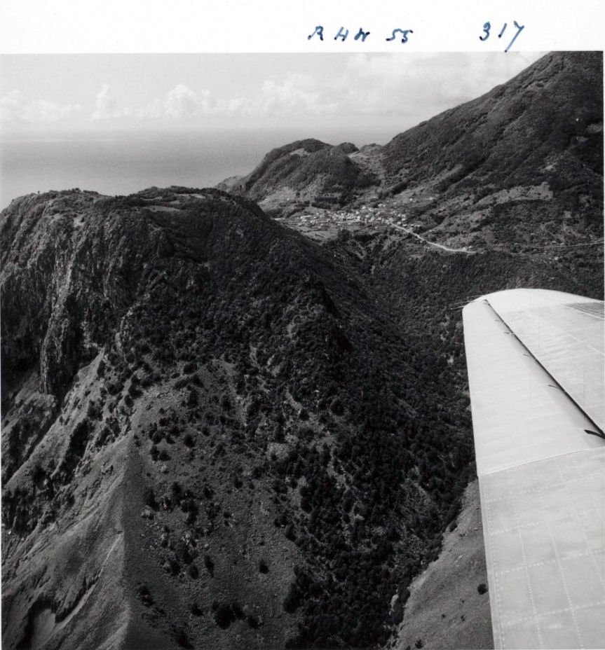 The second thing that I remember must have been when I was about five years old, just after the war. There was a strange noise around the island and people were running out of their homes looking towards the skies. What proved to be a plane flew over and dropped something which landed somewhere in the bushes and turned out to be a bag of letters. These planes during the war flew regularly over the island. They served as escorts for convoys which would head down to Belem Brazil and from there over the Atlantic to Africa and on to the European front. Years later I got a call from a Mr. Lloyd Cooley at Captain’s Quarters Hotel. He was one of those pilots flying over Saba during the war and dropping letters in the hope that some young lady would contact them and get married. So much had been written up in magazines in the United States about Saba being the island of women that these pilots flying over considered that Saba was the mother lode of beautiful women. Saba turned out to have a particular attraction to have on American airline crews. The then very isolated and exotic appearing island was known from articles written in the National Geographic Magazine, among others, while the American press after 1940 wrote extensively about America’s Caribbean backyard. In its issue of November 1940 the National Geographic Magazine wrote an extensive article about Saba. On June 24th 1941 six American military planes flew several times low over Saba, while two days later St. Maarten was checked out by two planes.