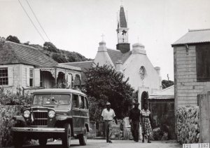 The St. Paul’s Conversion church in Windwardside, the first Roman Catholic church built on Saba in the year 1860. In the photo are Fred Hassell and Peter Every and his wife Lean.