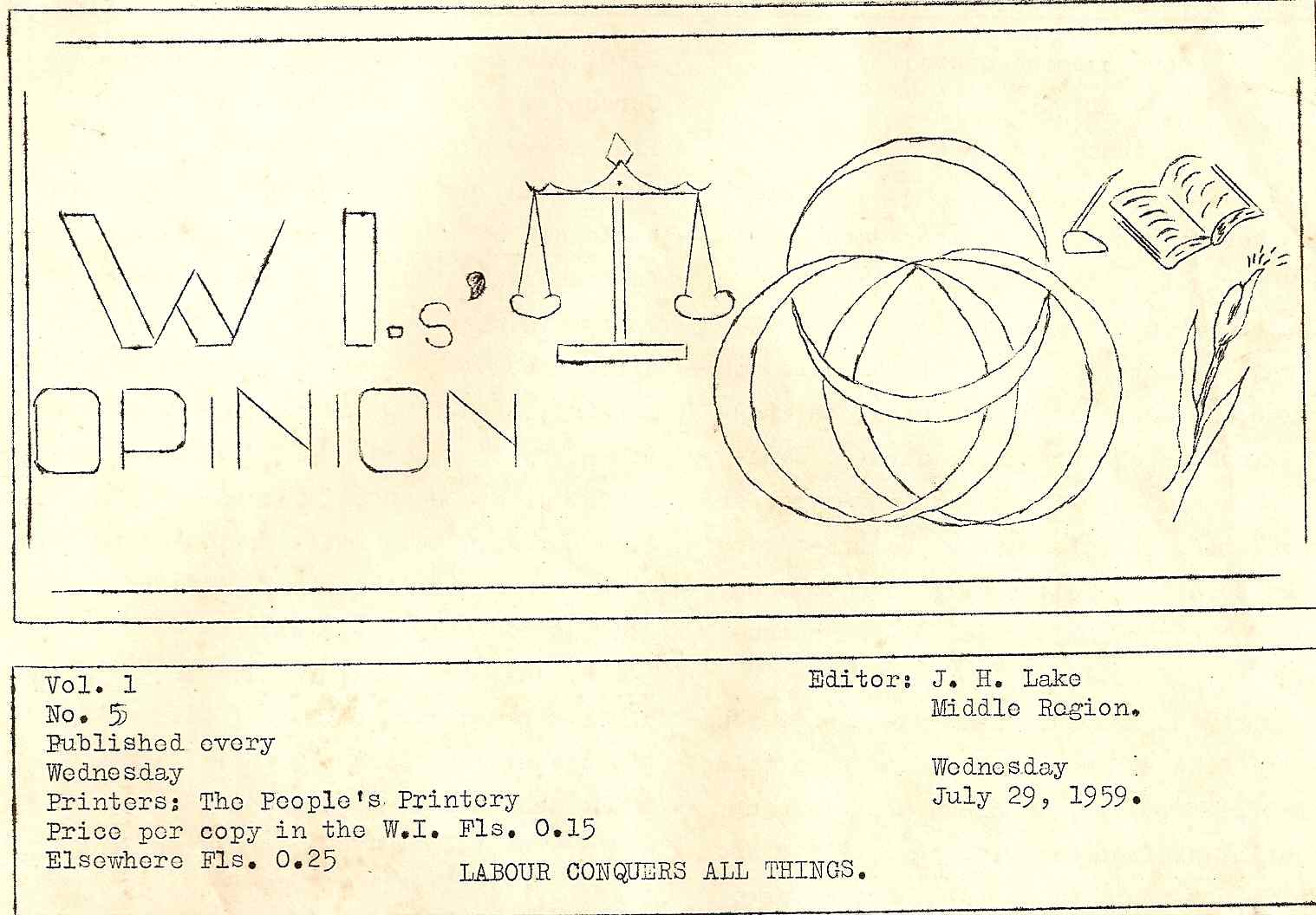 On Emancipation Day, July 1st, 1959, Jose Lake as he was widely known, founded the weekly newspaper the Windward Islands Opinion of which he wrote that its purpose was “ a means of helping to improve the social, economic, educational, and political conditions of the Windward Islands by advocating against the causes of Injustice and Oppression.”
