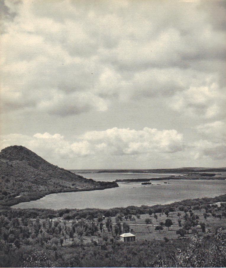 “The view of the low lands, nearly uncultivated on the lake’s background, is less pleasing to the eye, contrasting more vividly with enchanting “Kool-Baai”- valley extending on your right hand. From there the first estate of the French Quarter, “Mont-Fortune’, makes a most pleasant and comely impression, its buildings standing on a knoll the green plot of which is nicely outlines against white walls and red windows. This enchanting valley is variegated and cheered up now with light- and dark greens of sugar cane fields and pastureland with grazing cattle, now with numerous blacks working in grayish dug terrain. Far away in the background you would notice the long South West angle of Anguilla, behind it Dog-Island and Prickly-Pear, two insignificant small islands.