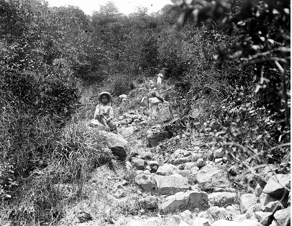 The roads or rather the paths, which lead from the said landing places to the valley are extraordinarily steep and difficult, and each almost an hour long going, thereby so narrow going up between frightening chasms, that no two persons can go side by side. Everything which one wants to carry up or bring down must be carried in small quantities from or to The Valley, and borne with difficulty.