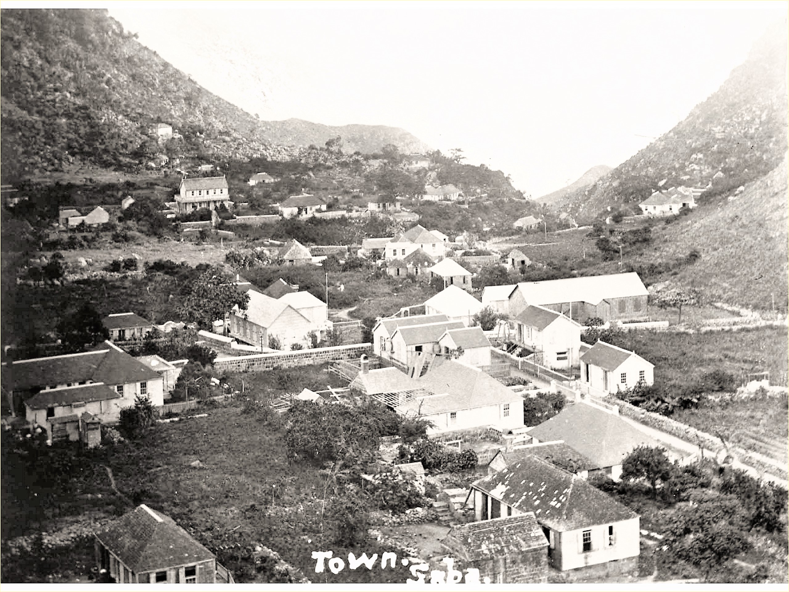 Saba was discovered by Colombus in 1492 on a Sunday or Sabbath known by the Spanish Domingo or Saba, which island was unihabited at the time. People claim that the first population consisted of emigrants from Sint Eustatius and St. Kitts (* Hollanders, Scots and Irish, who settled here in 1665) and in the beginning cultivated a bit of cotton and coffee, and later on also sugar, while some things were shipped via St. Eustatius to Holland.