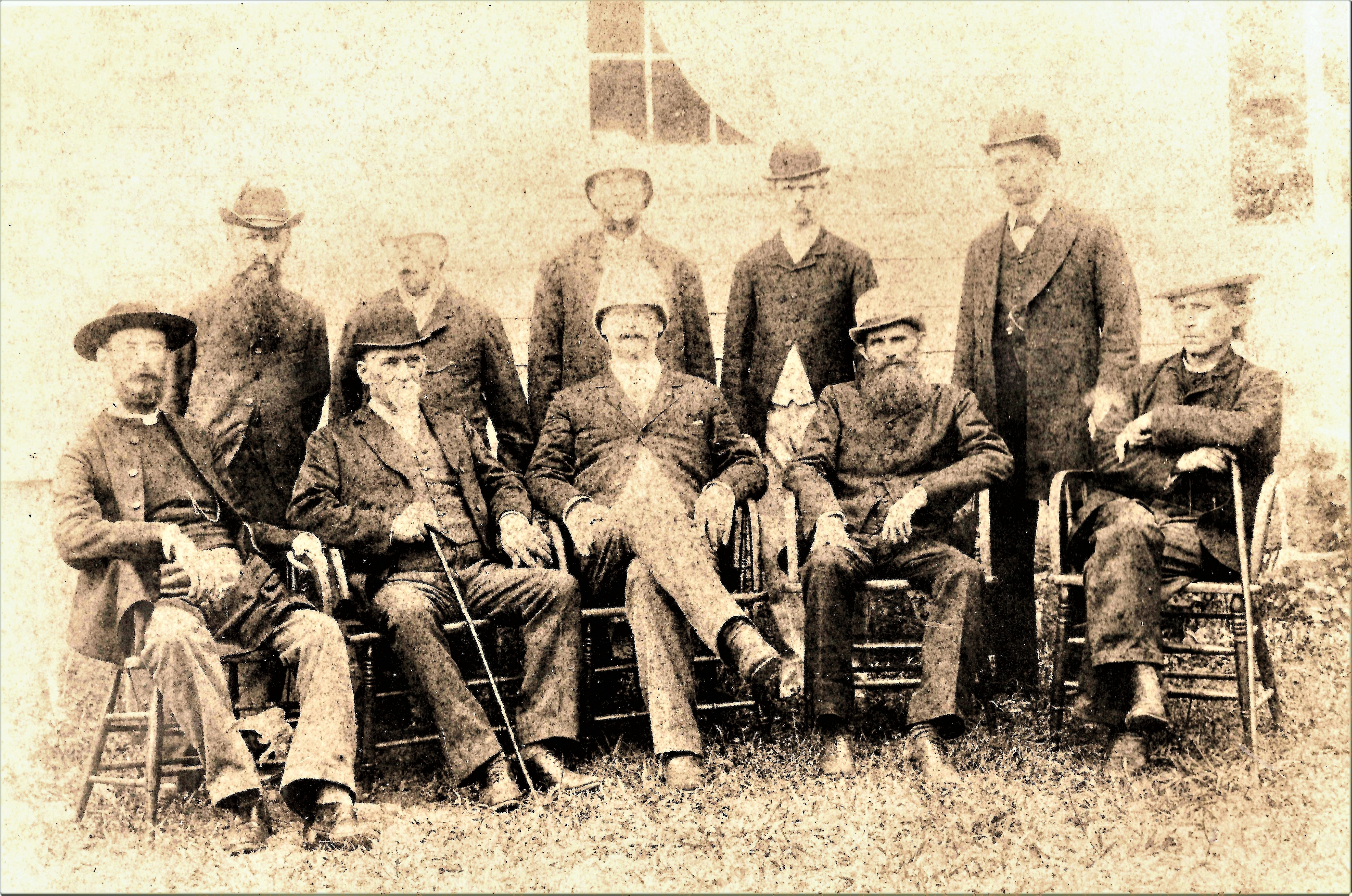Front row. Rev. John William Leverock (Anglican priest), Theodore Godet Heyliger, Merchant, Governor Johannes de Veer, Lt. Governor Thomas Holm, Father Laurens Mulder Roman Catholic Priest.