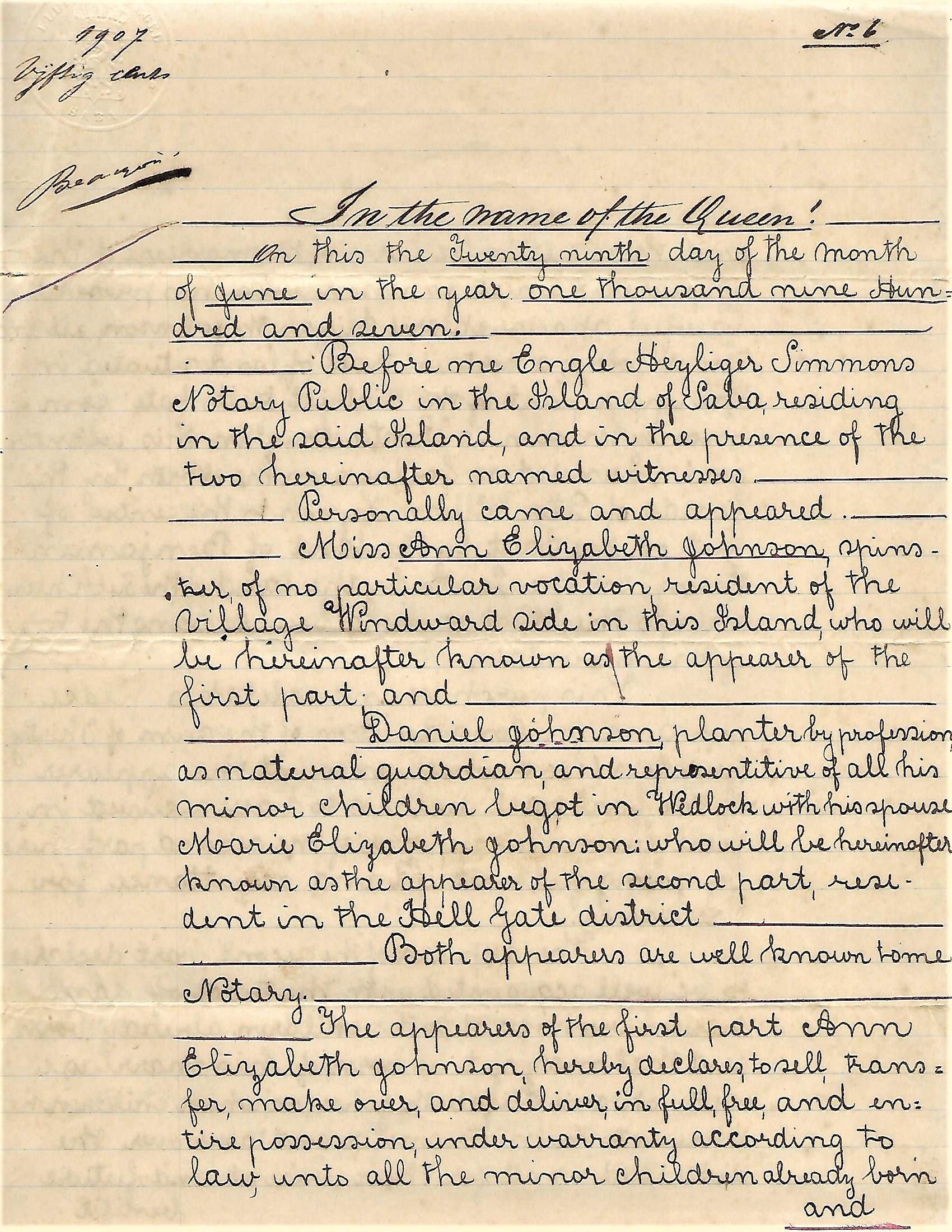 This bill-of-sale not only shows that Saba had a government but one that functioned, Even though the original settlers may have been pirates the Island of Saba was ruled according to International Standars of Law at the time. Saba had its own elected officials to assit the Commander of the Island,all native to the island. Saba had its own Court of Law which was comprised of all native Sabans, its own local Judge, its own local Notary while there was an appeals Court on St. Eustatius. In 2021 Saba is dependent on lawyers not from here as their advisors and seem to hestitate to ask locals for advice. Saba is now dependent on consultants not from here who do not know one cent worth of our local history and or would be historians who do not believe in oral history nor did they know the people and the hardship they went through to survive on this our beloved Saba.